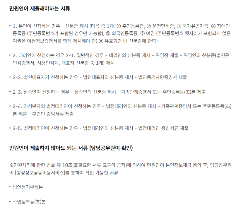 - 수수료: 자치단체 조례에 따라 다르며, 전자민원 신청 시 무료인 경우가 많습니다.