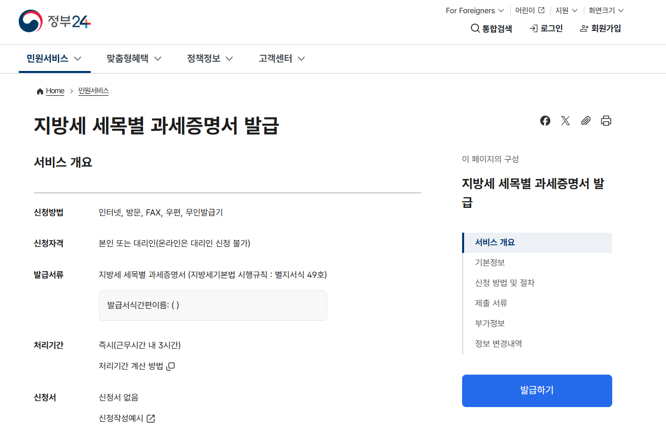재산세 납부증명서 처리 기간 및 수수료